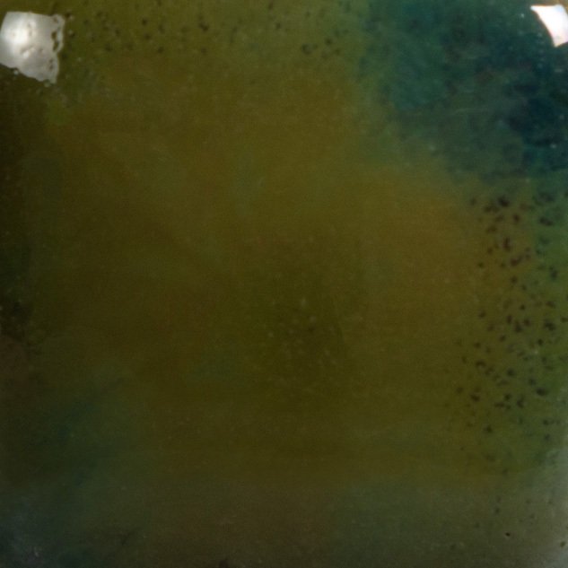 Cono 06: Peacock Green es un esmalte de base azul abigarrado con cristales grandes de color azul / verde brillante que se derriten.